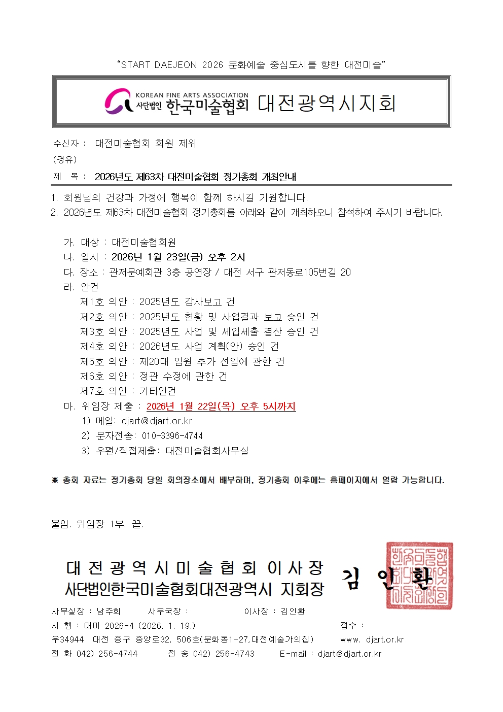 [대전미술협회]2026년도 제63차 정기총회 개최 안내