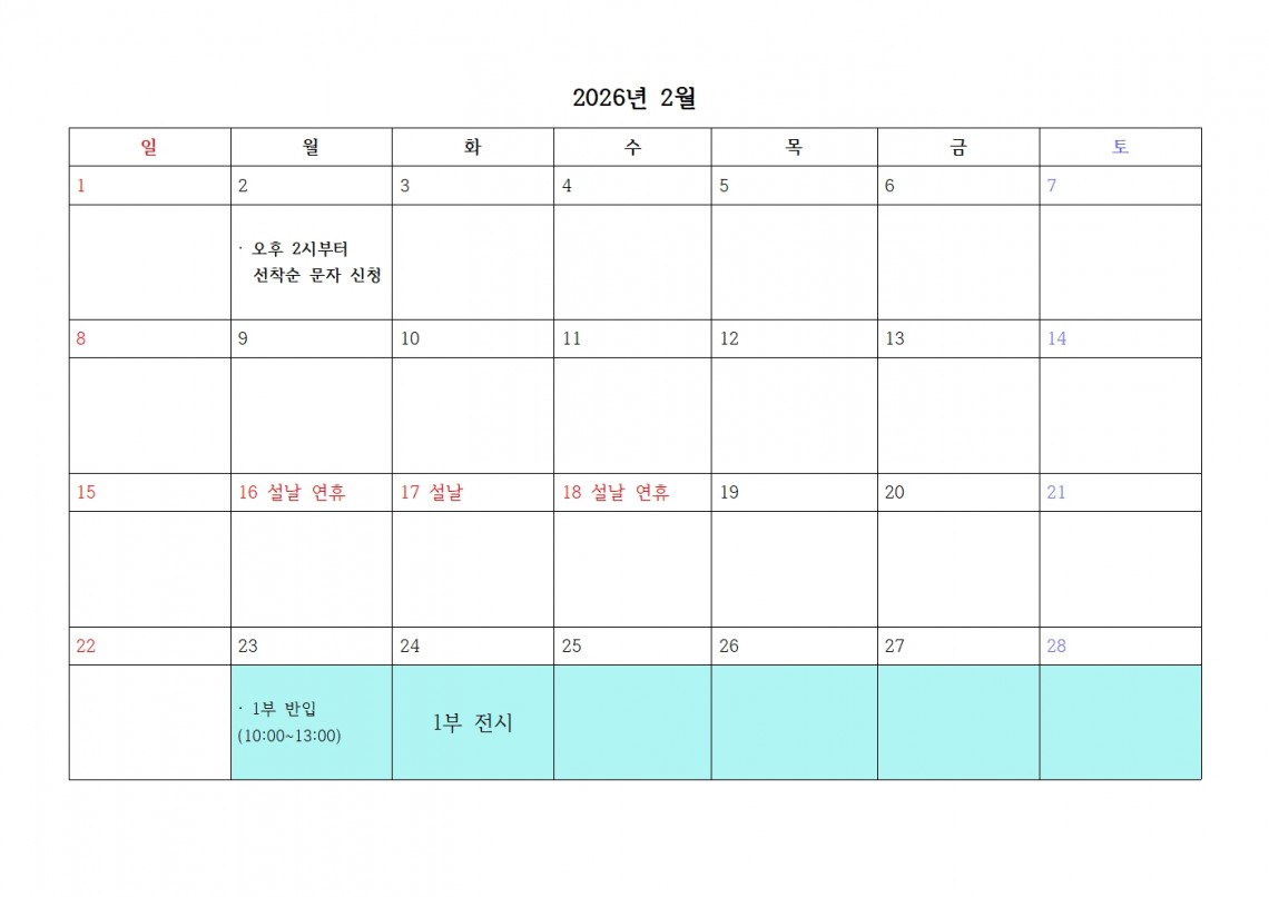 ※ 2026. 2. 2.(월) 오후 2시 이전에 보내신 문자는 무효 처리하므로, 일자 및 시간 필히 확인 바랍니다.
